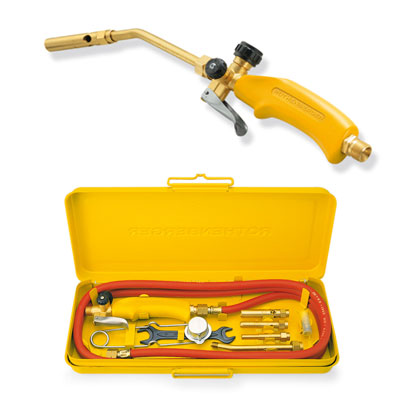 Ацетиленовая и пропановая горелка представлена в наборах в стальном кейсе со всеми необходимыми принадлежностями (стальные сопла со штепсельным ниппелем для пропана, латунные сопла для ацетилена, пропановый или ацетиленовый шланг, безопасная зажигалка, запасные кремни, ключ и пр.).